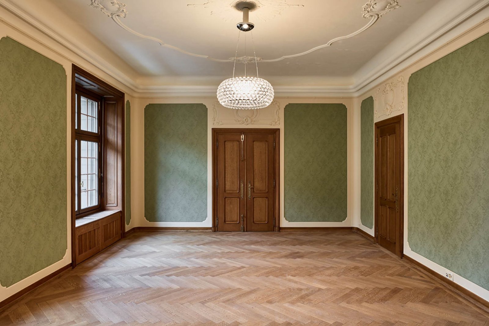 Die wenigen Räume im Originalzustand wurden sorgfältig saniert und ein Neben- zugang für die oberen Geschosse wieder- hergestellt.