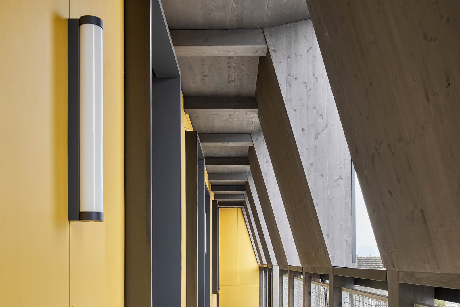 Die PV-Anlage wurde flächenbündig in der Fassade und im Mansardendach verbaut. Weitere PV-Elemente wurden mit einer Unterkonstruktion auf dem Flachdach installiert. Zusammen mit einer Erdwärmesonde, kann die energetische Versorgung des Gebäudes sichergestellt werden. Die Erdsonden-Wärmepumpe bedient eine Bodenheizung. Im Sommer werden die Böden unter Raumtemperatur gekühlt und entziehen dem Raum Wärme.