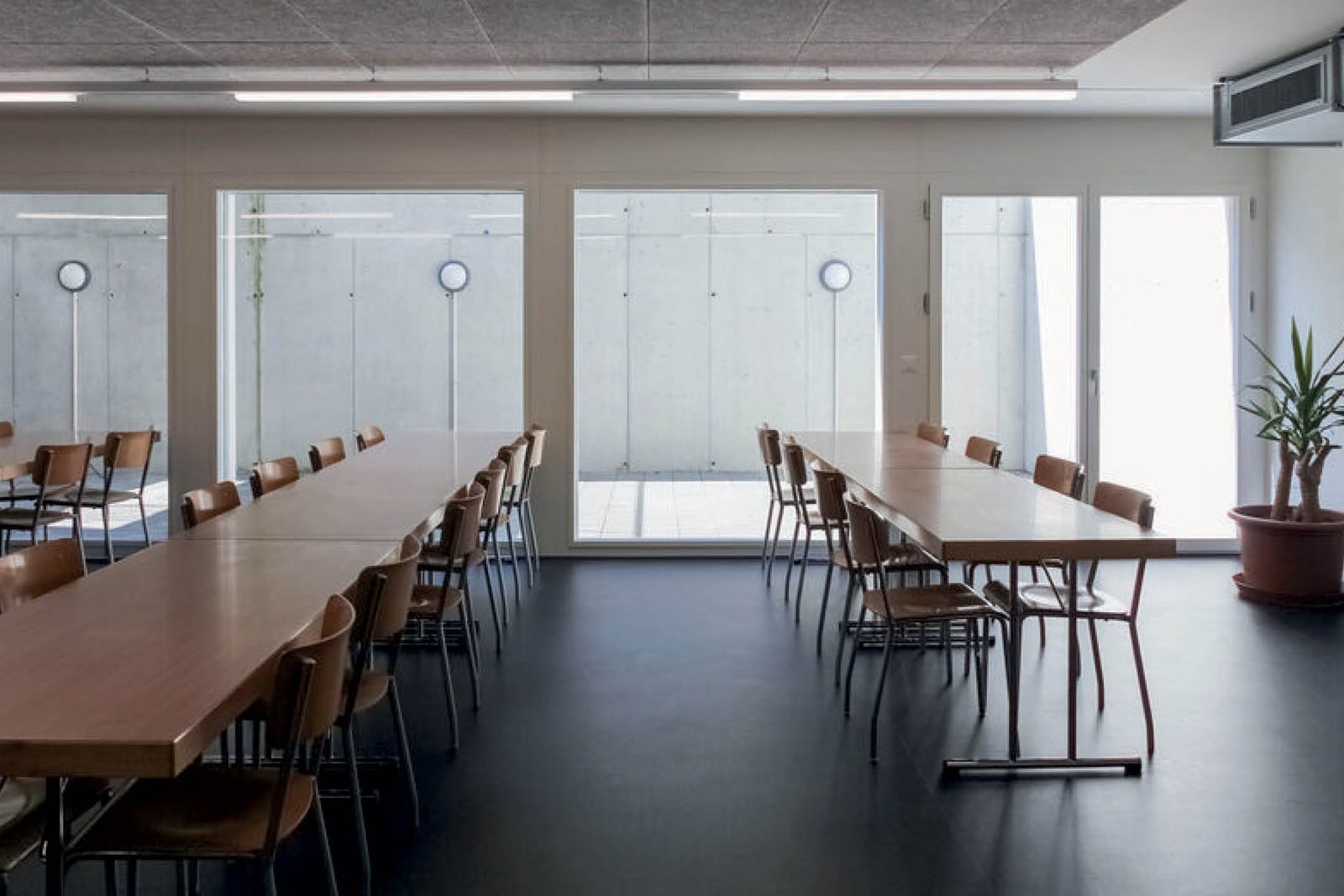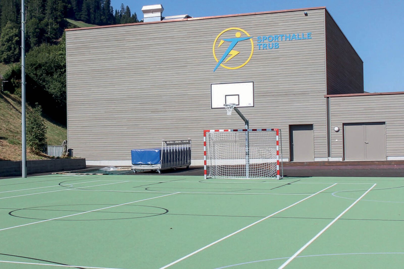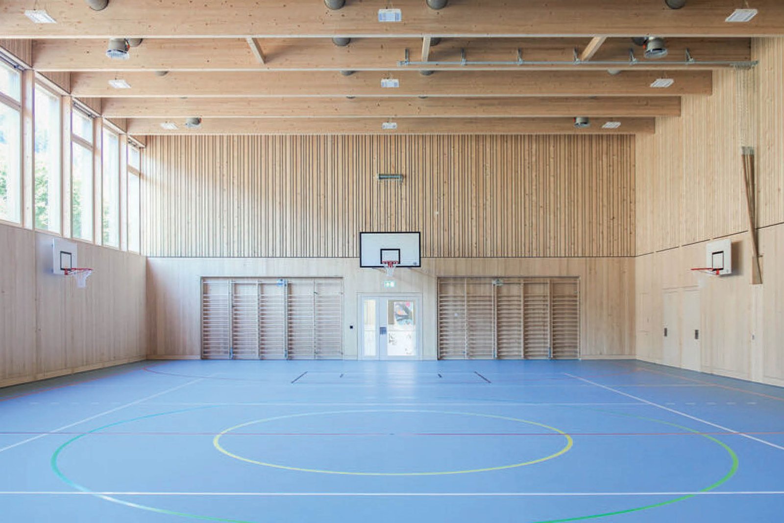Gesamtsanierung des bestehenden Schulhauses mit Turnhalle in zwei Etappen. In der ersten Phase wird im Schulhaus Trakt der Holzanbau für den neuen Kindergarten erstellt. Die bestehenden Schulzimmer werden teilweise angepasst. Im Untergeschoss entstehen im heutigen Schwingkeller ein Essraum für die Mittagsküche. Weiter wird eine Gastroküche eingebaut. In der zweiten Etappe wird die bestehende Einfach-Turnhalle abgerissen und neu aufgebaut. Im UG entstehen neue Garderoben und der neue Schwingkeller. Die komplette Umgebung wird neu gestaltet. Der Umbau erfolgt während den Schulferien und unter laufendem Schulbetrieb.